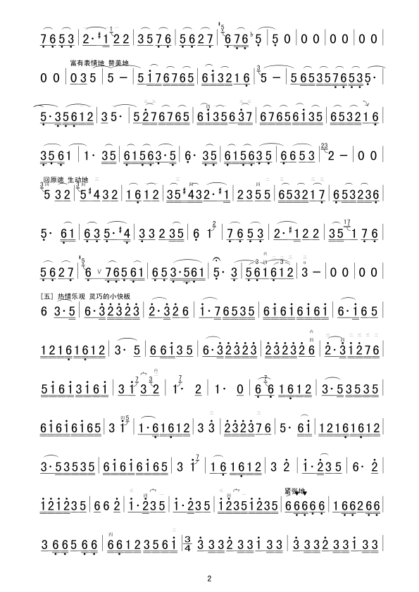 田园春色 二胡谱 简谱 曲谱
