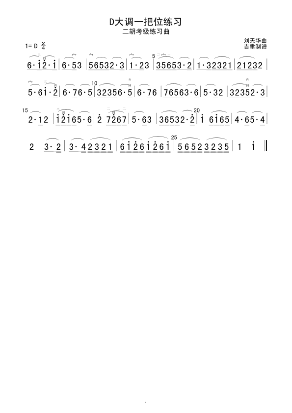 D大调一把位练习 二胡谱 简谱 曲谱