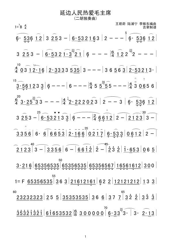 延边人民热爱毛主席 二胡谱 曲谱