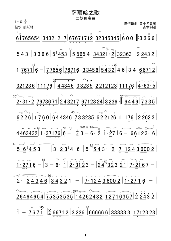 吐鲁番的葡萄熟了 二胡谱 曲谱