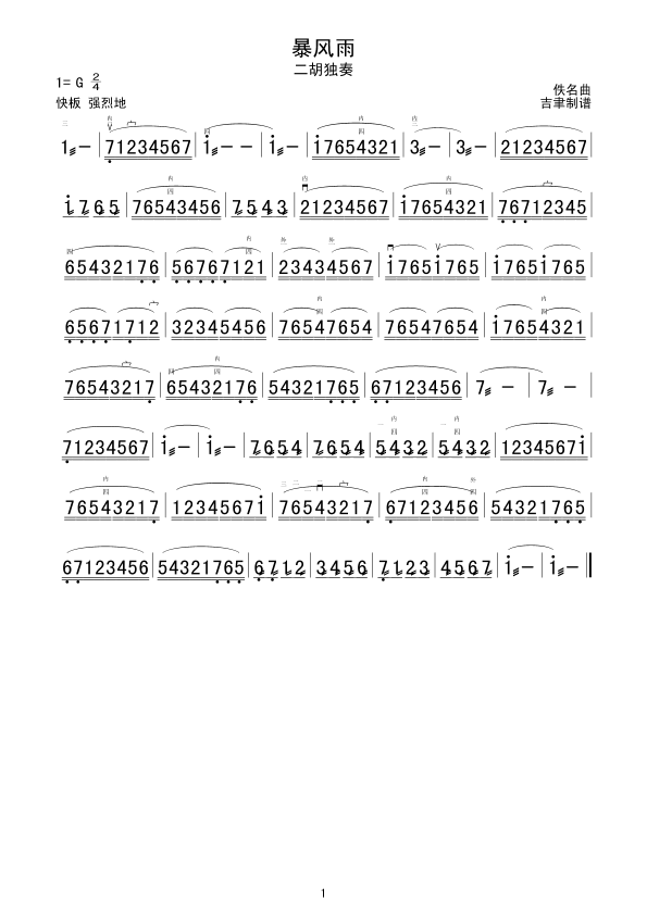 暴风雨 二胡谱 曲谱