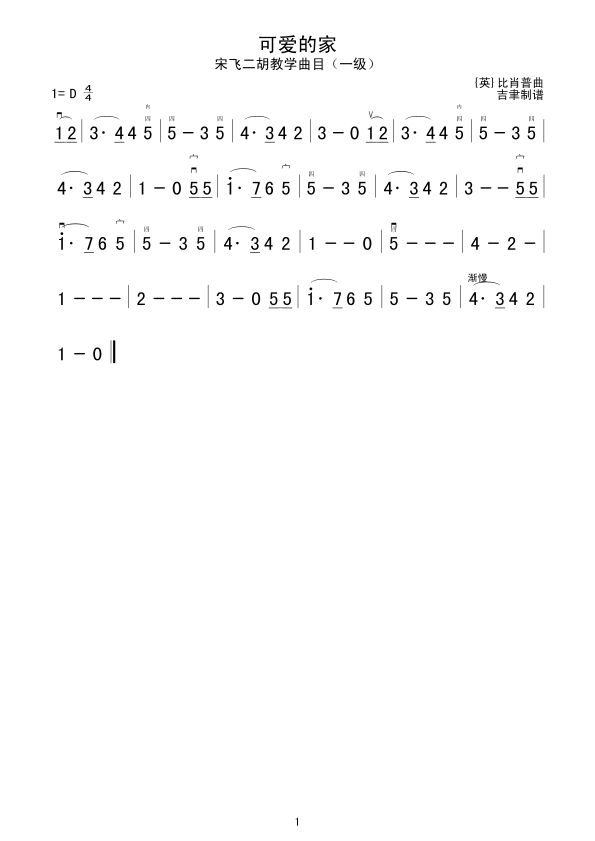 可爱的家 二胡谱 曲谱