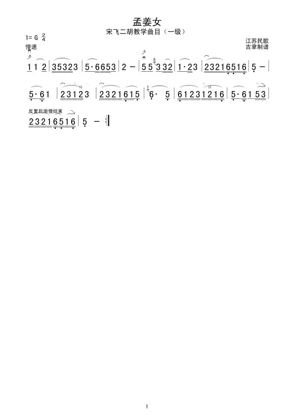 孟姜女 二胡谱 曲谱