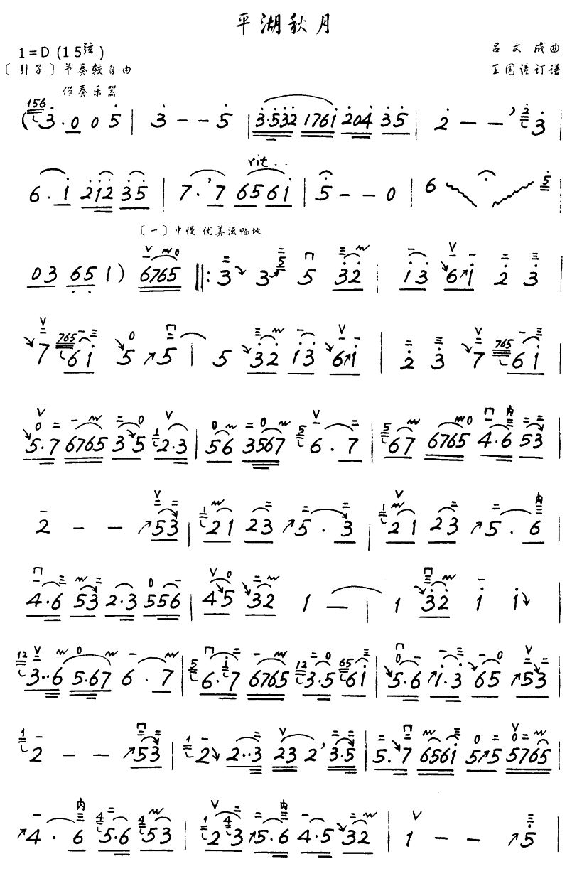 平湖秋月 二胡谱