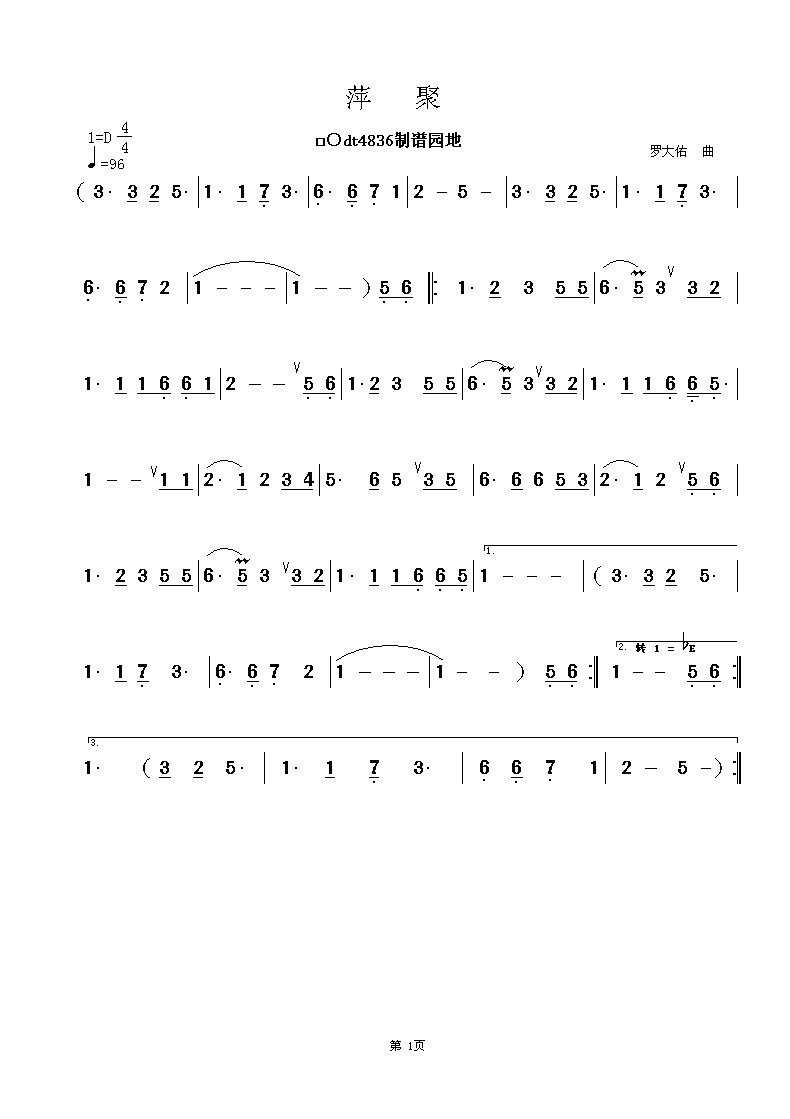 萍聚 葫芦丝 简谱 曲谱