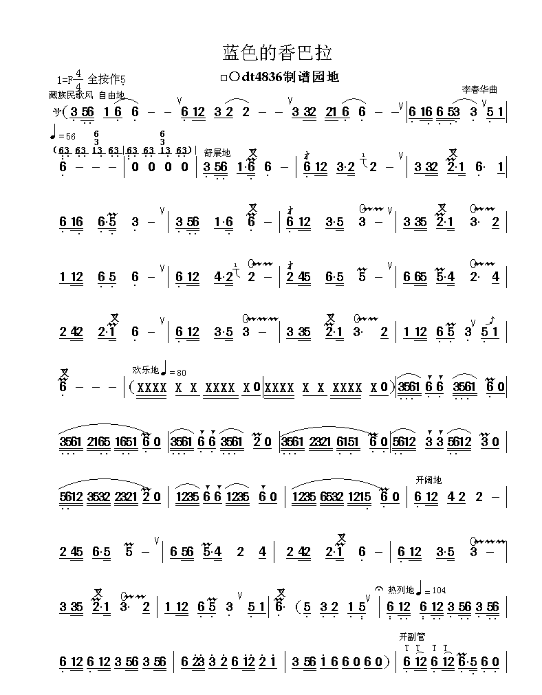 蓝色的香巴拉 葫芦丝 简谱 曲谱