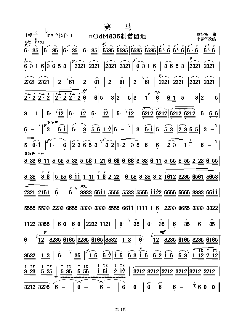 赛马 葫芦丝 简谱 曲谱