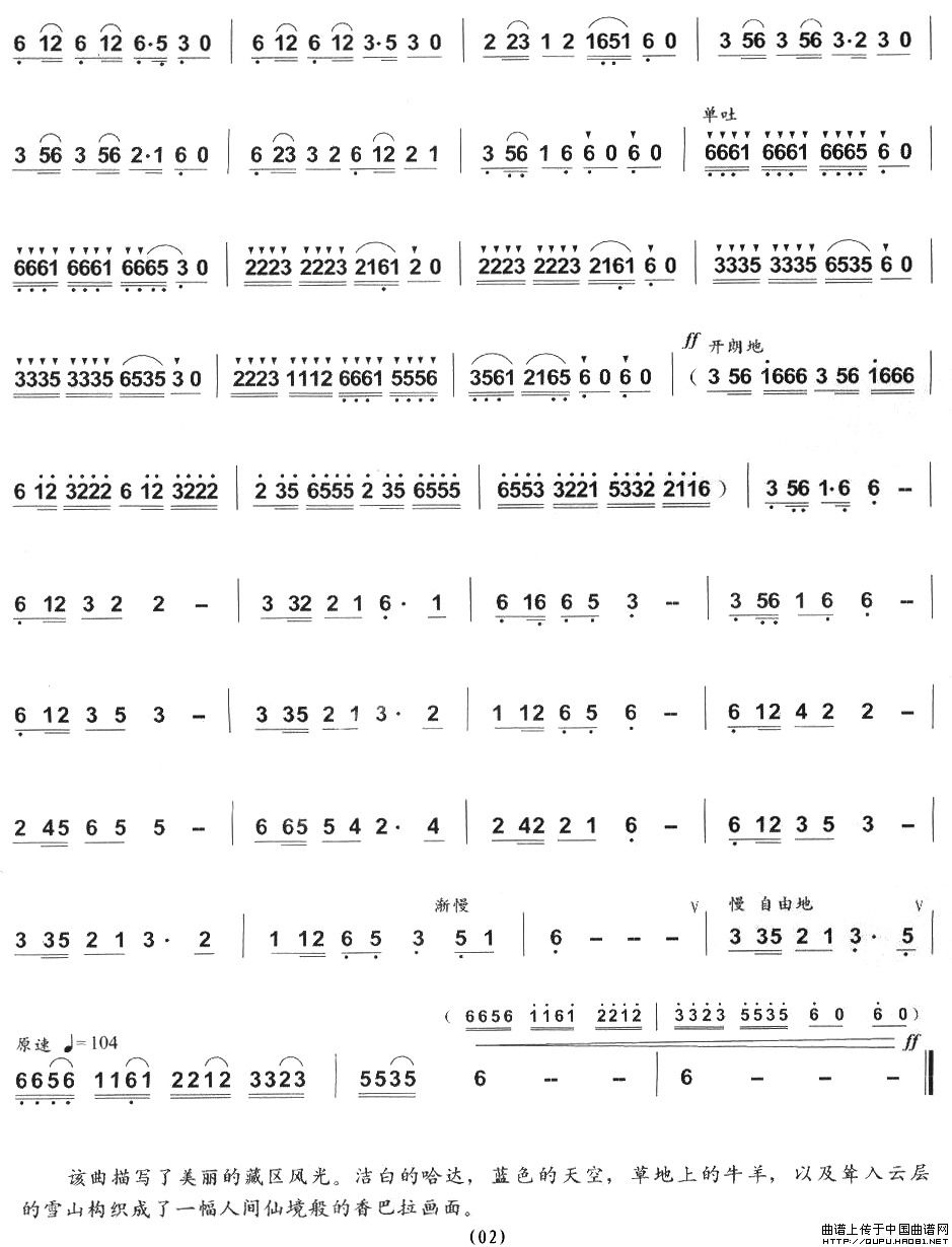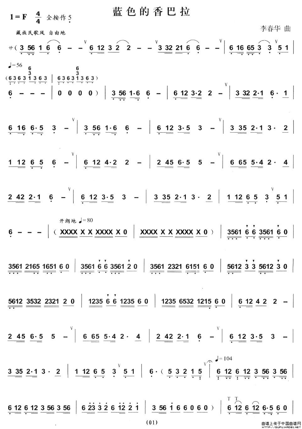 蓝色的香巴拉 葫芦丝谱 曲谱