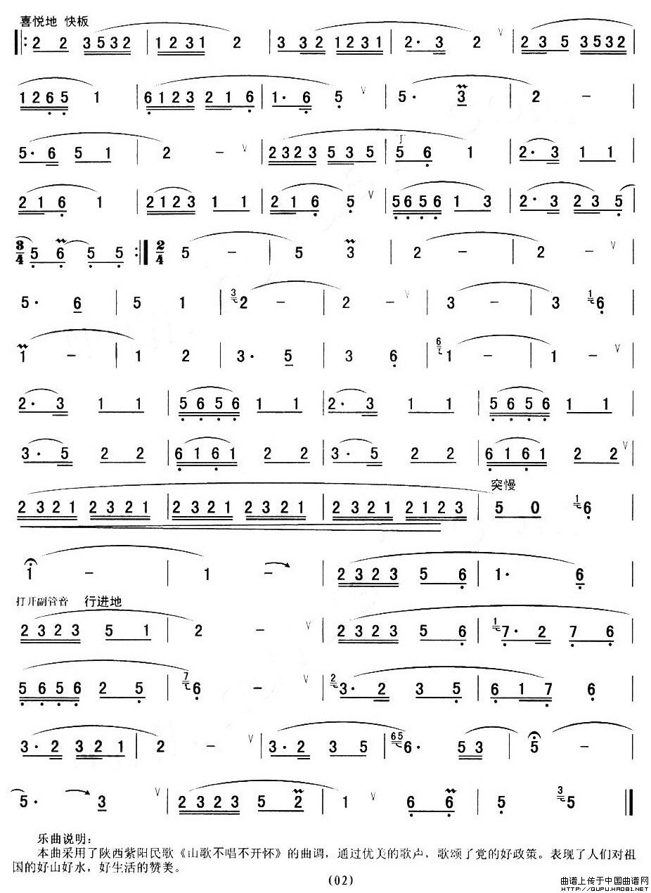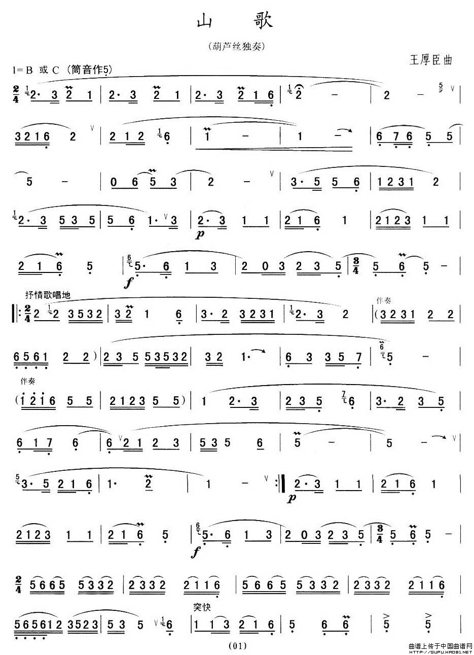 山歌(王厚臣版) 葫芦丝谱 曲谱