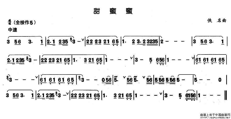 山歌(王厚臣版) 葫芦丝谱 曲谱