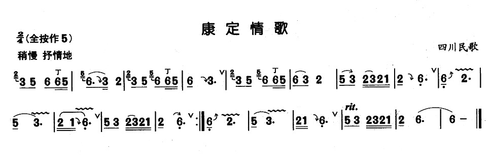 康定情歌 葫芦丝谱 曲谱