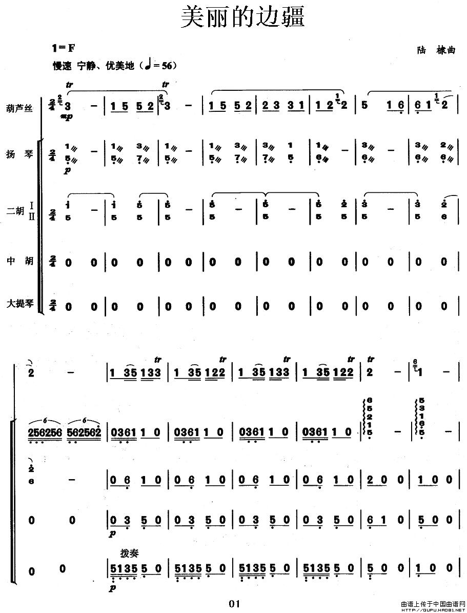 美丽的边疆 葫芦丝谱 伴奏谱 曲谱