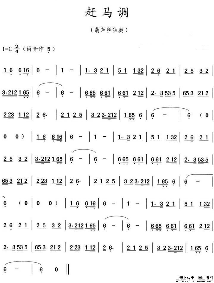 赛马 葫芦丝谱 曲谱