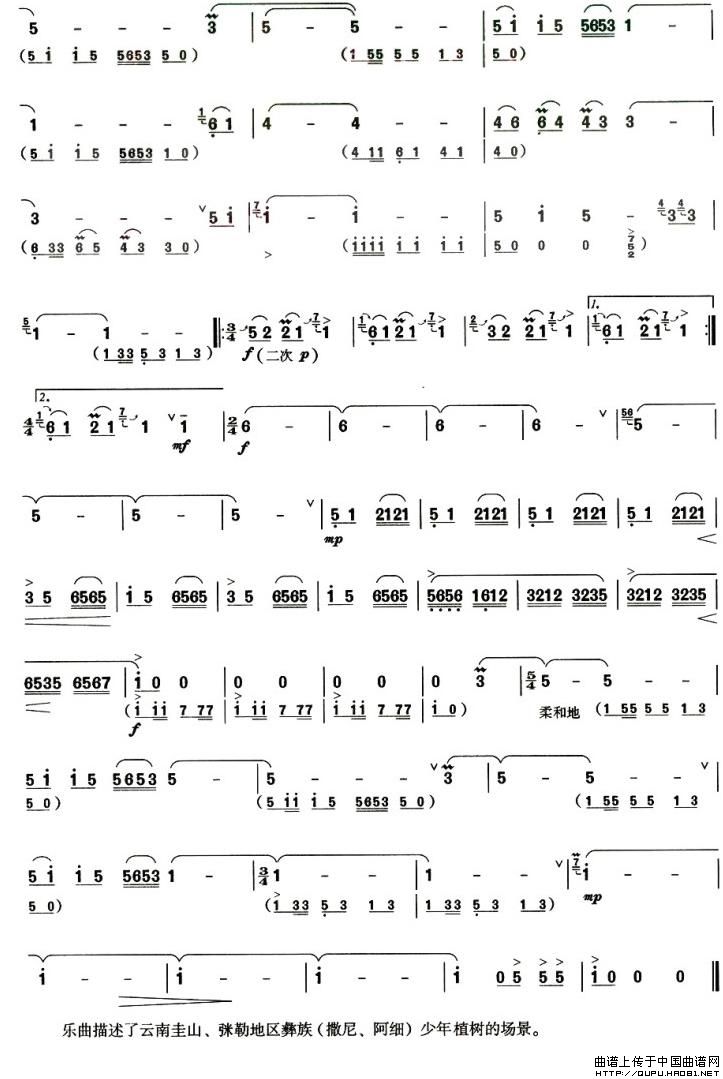愉快的劳动 葫芦丝谱 曲谱
