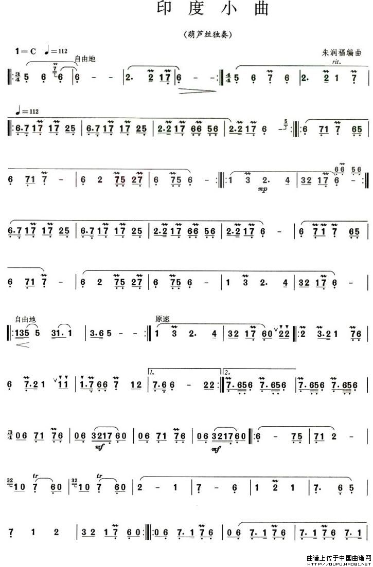 印度小曲 葫芦丝谱 曲谱