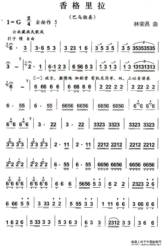 香格里拉 葫芦丝谱 曲谱