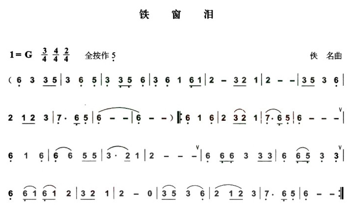 铁窗泪 葫芦丝谱 曲谱