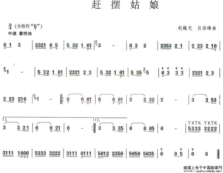 赶摆姑娘 葫芦丝谱