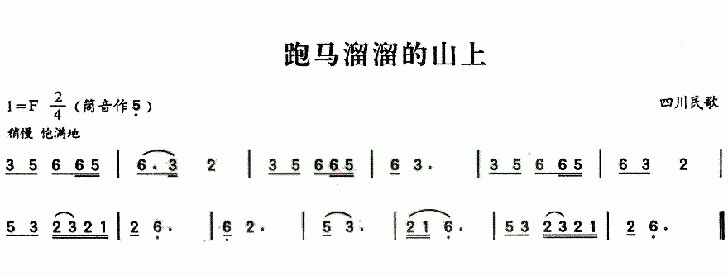 跑马溜溜的山上 葫芦丝谱 曲谱