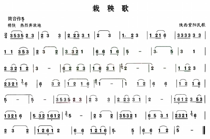 栽秧歌 葫芦丝谱 曲谱