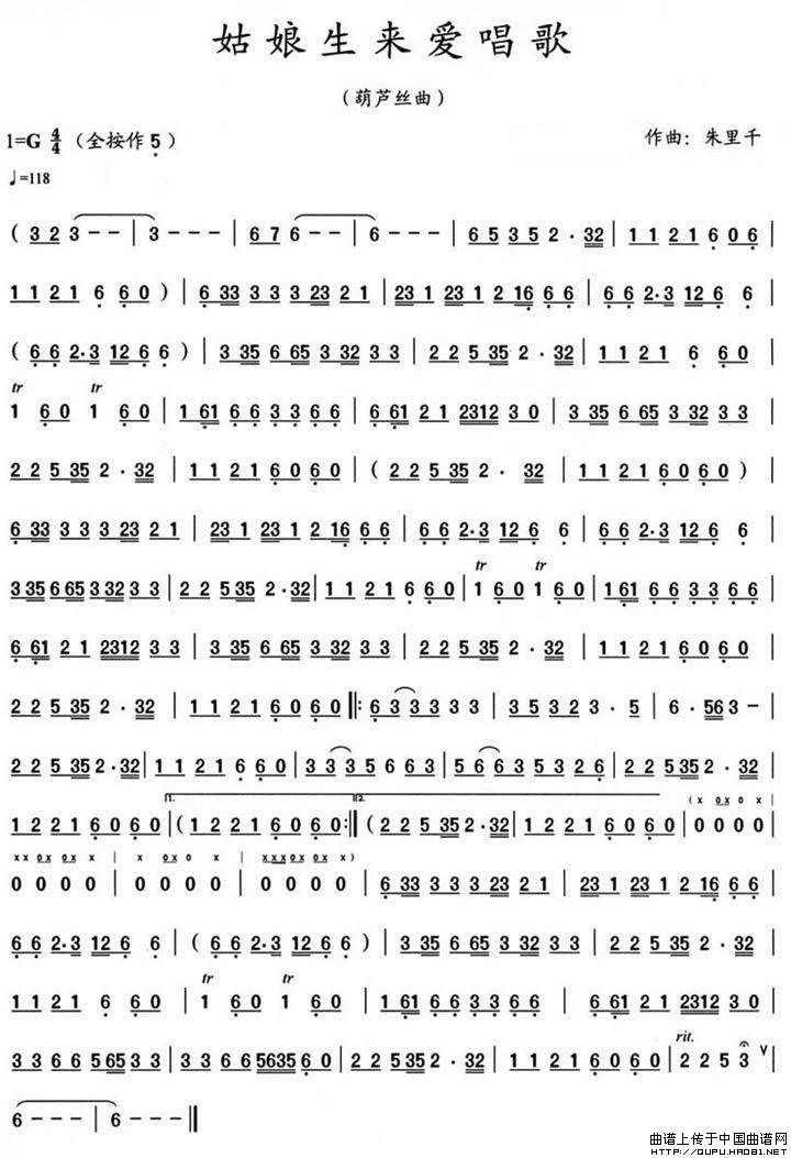 姑娘生来爱唱歌 葫芦丝谱 曲谱
