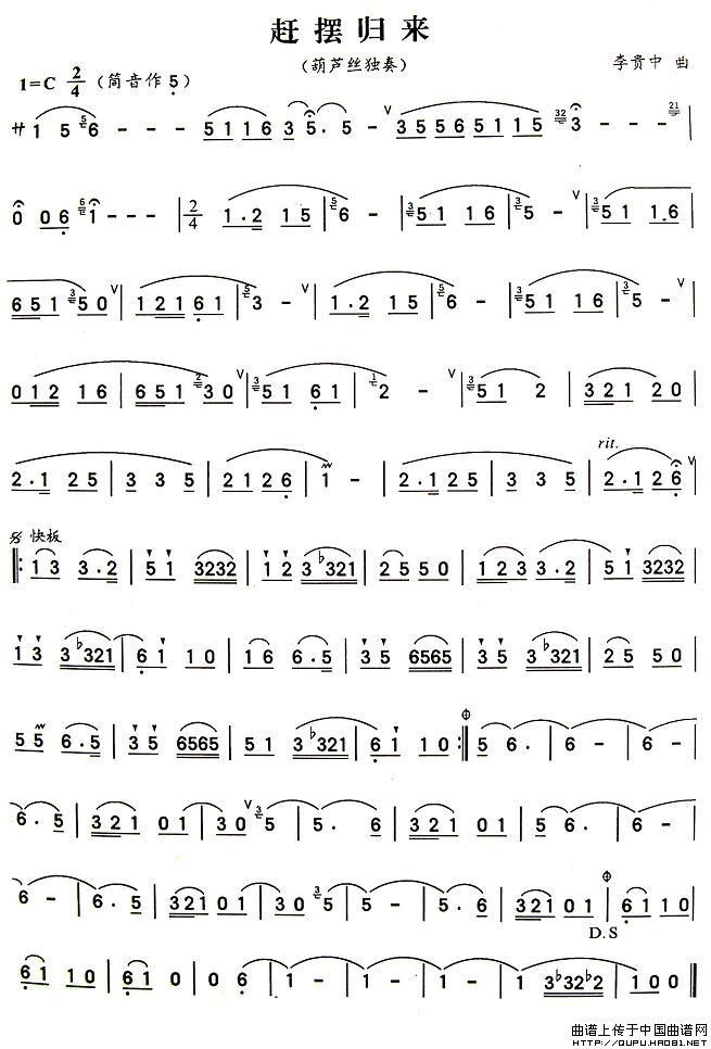 赶摆归来 葫芦丝谱 曲谱