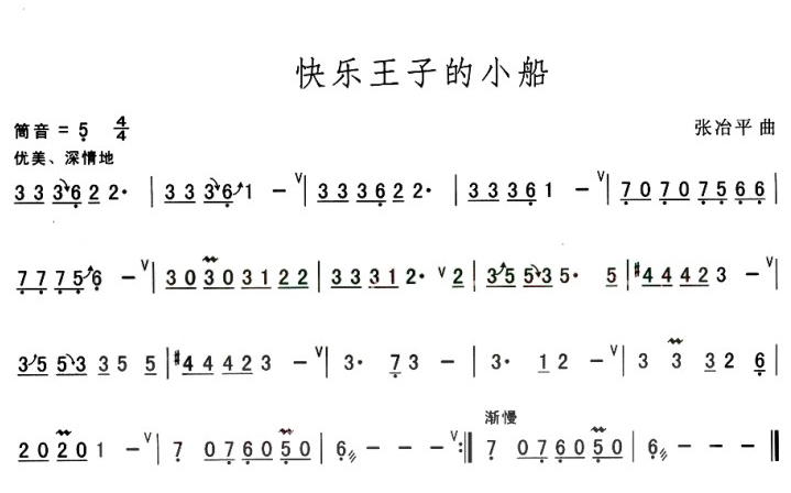 快乐王子的小船 葫芦丝谱 曲谱