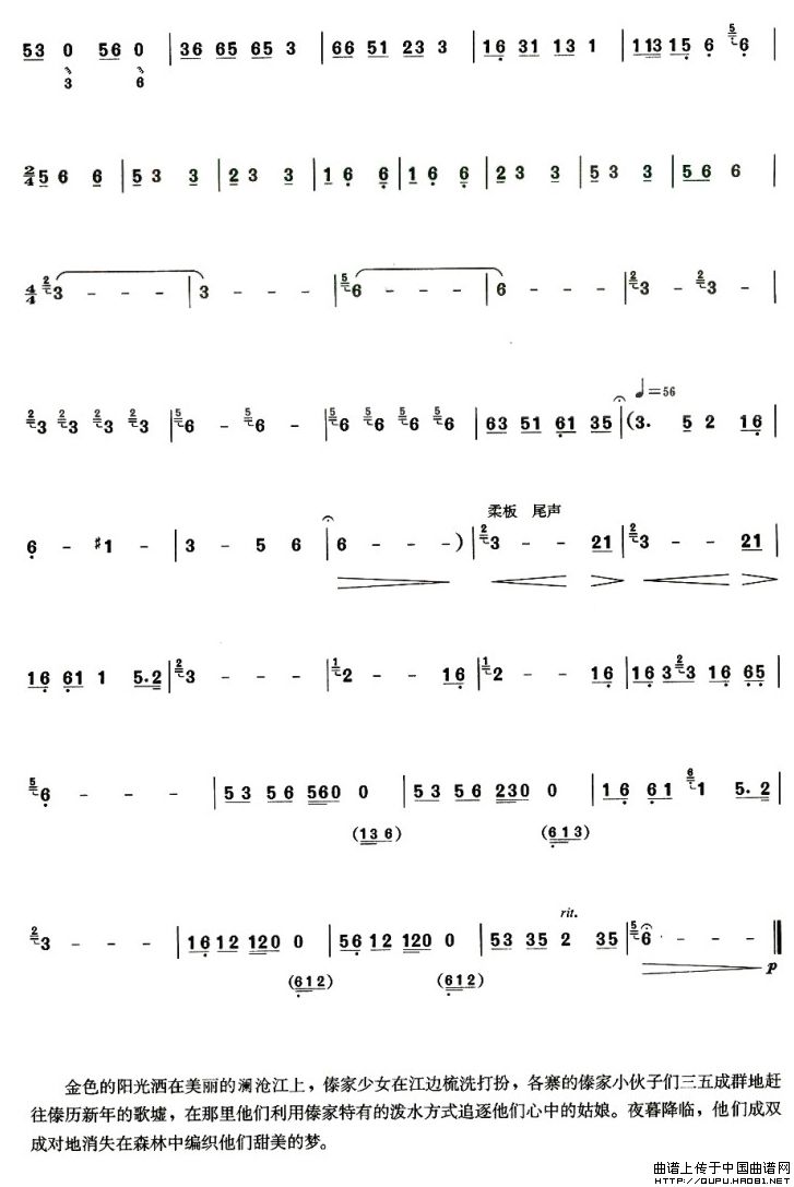傣乡晨曲 葫芦丝谱 曲谱