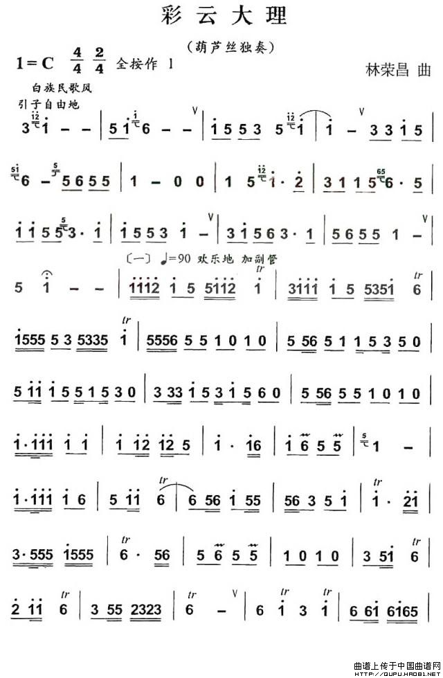彩云大理 葫芦丝谱 曲谱