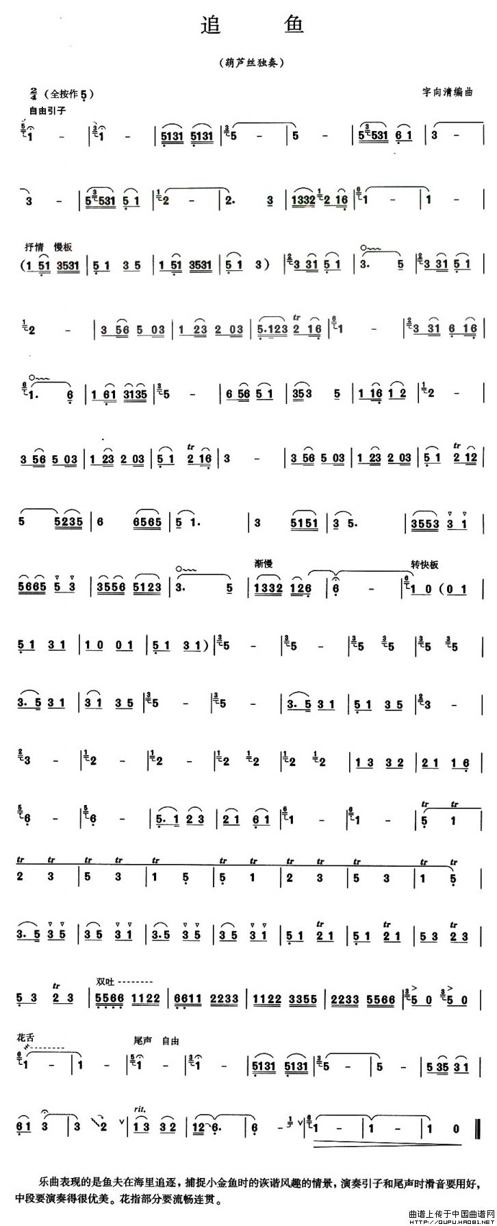 追鱼 葫芦丝谱 曲谱