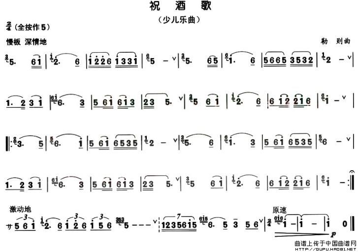 祝酒歌 葫芦丝谱 曲谱