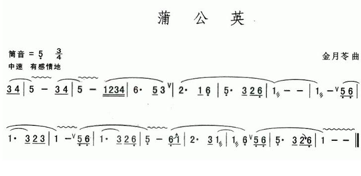 蒲公英 葫芦丝谱 曲谱