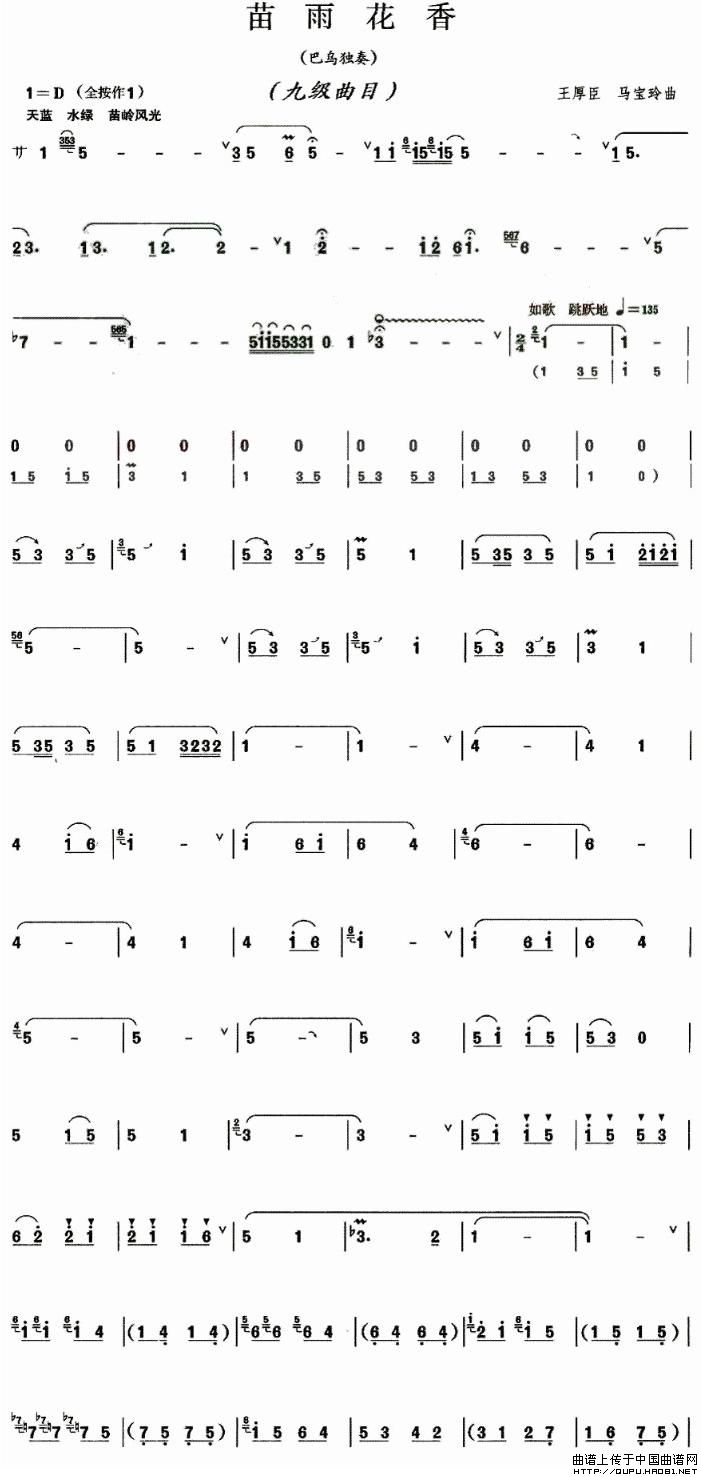 苗雨花香 葫芦丝谱 曲谱