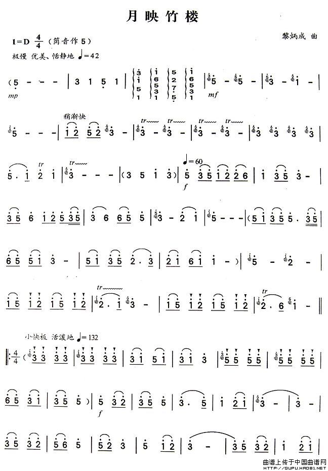 月映竹楼 葫芦丝谱 曲谱