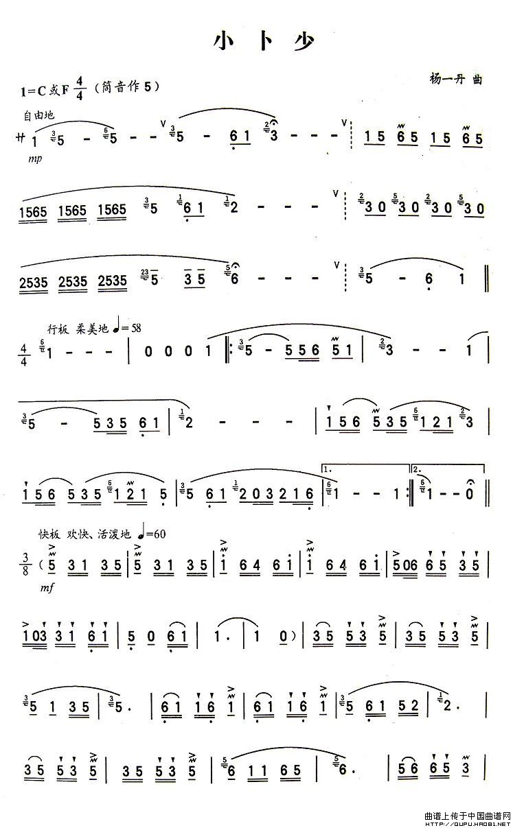 小卜少 葫芦丝谱 曲谱