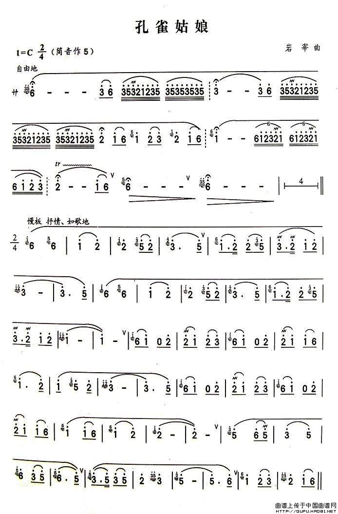 孔雀姑娘 葫芦丝谱 曲谱