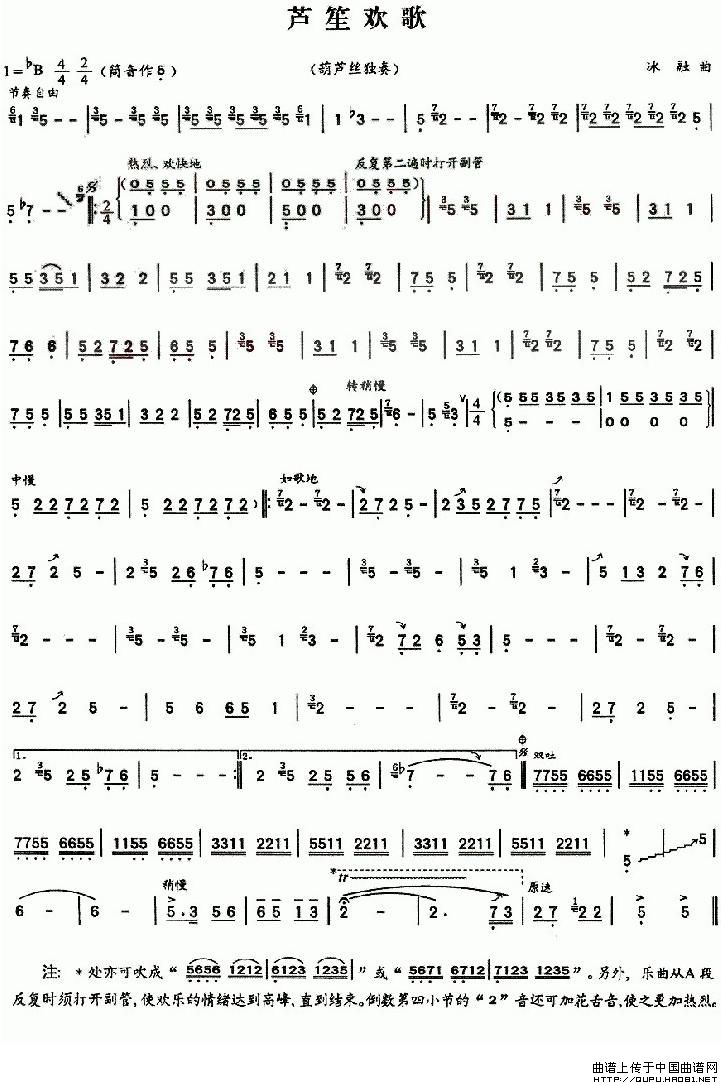 芦笙欢歌 葫芦丝谱 曲谱