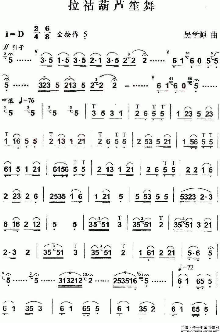 拉祜葫芦笙舞 葫芦丝谱 曲谱