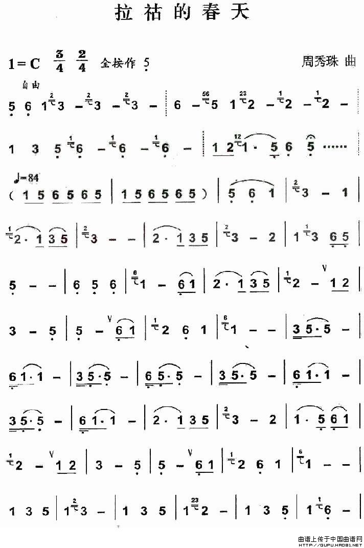 拉祜的春天 葫芦丝谱 曲谱