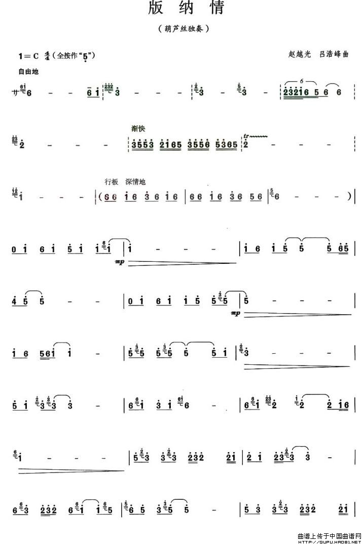 版纳情 葫芦丝谱 曲谱