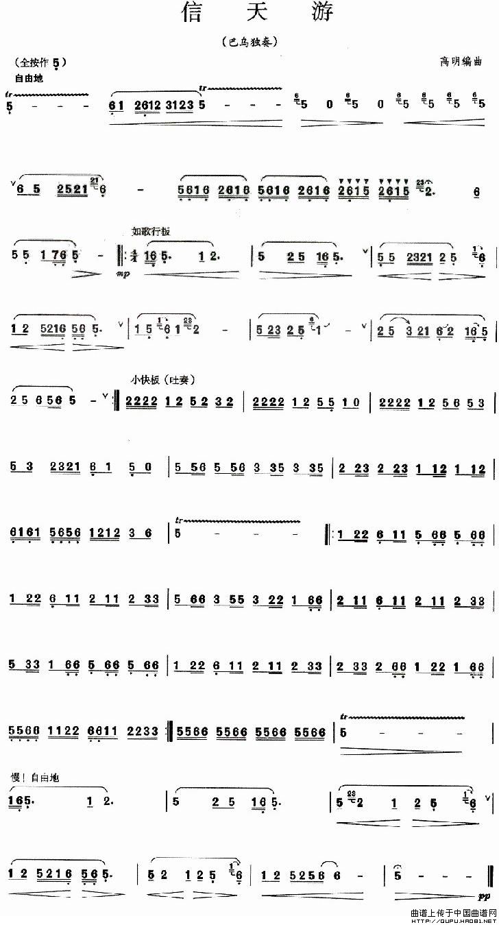 信天游 葫芦丝谱 曲谱
