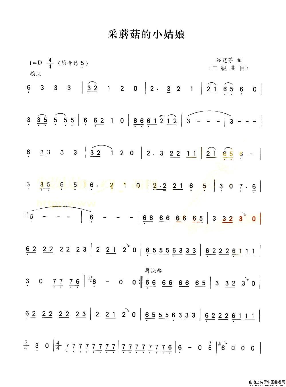 采蘑菇的小姑娘 葫芦丝谱 曲谱