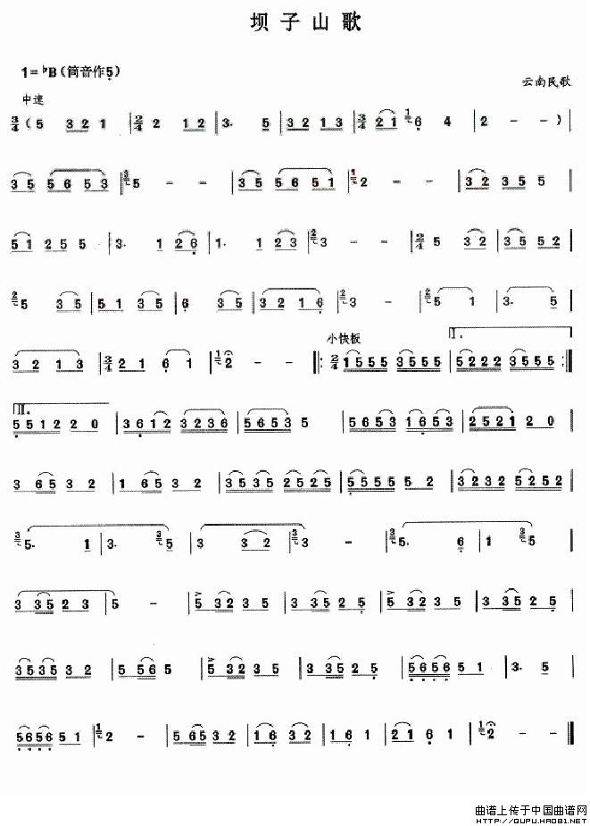坝子山歌 葫芦丝谱 曲谱