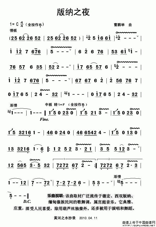 版纳之夜 葫芦丝谱 曲谱