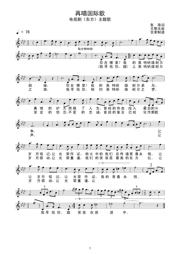 共产党来了苦变甜 五线谱 曲谱 歌谱