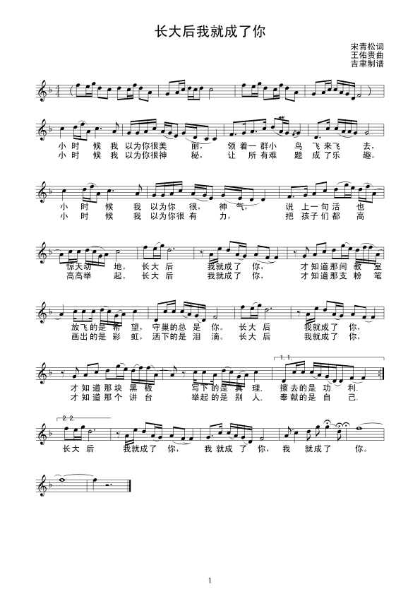 边疆的泉水清又纯 五线谱 曲谱 歌谱