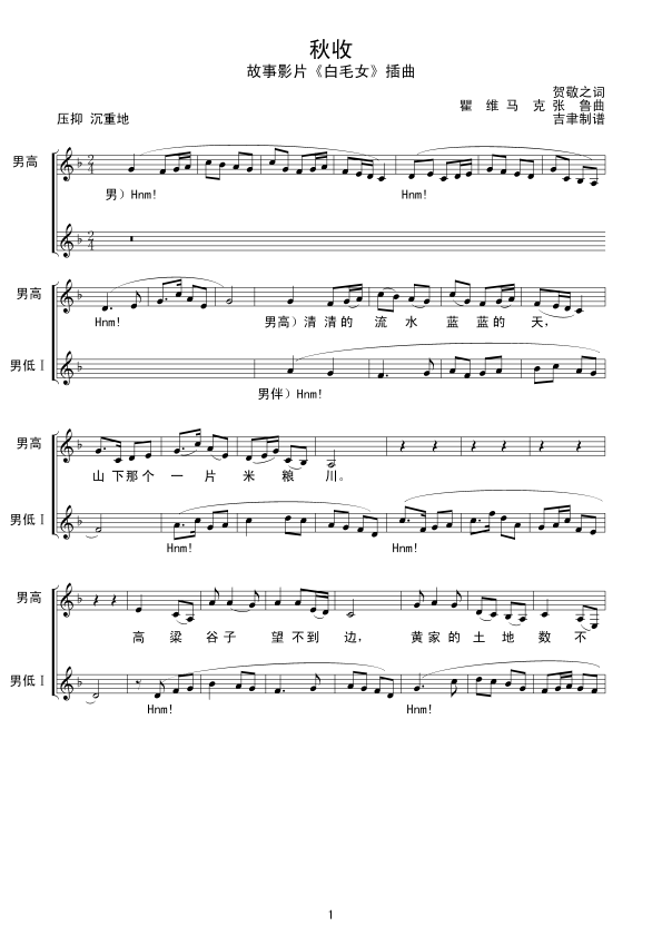秋收 五线谱 曲谱 歌谱