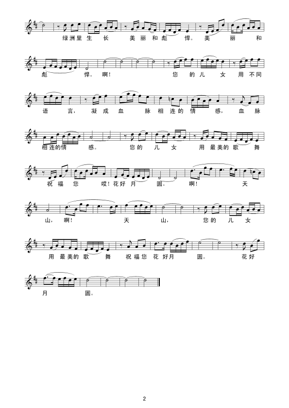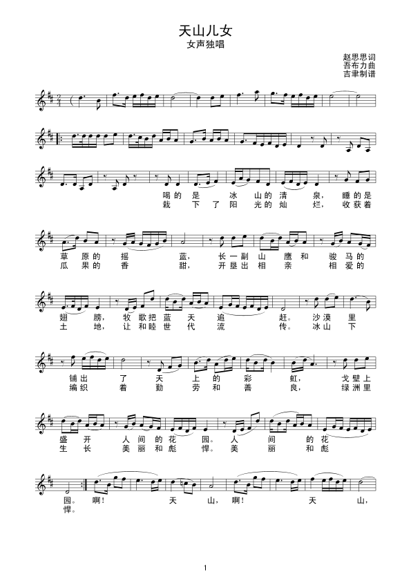 天山儿女 五线谱 曲谱 歌谱
