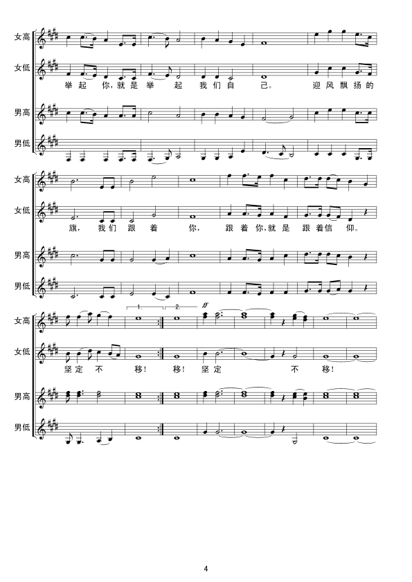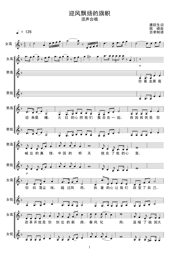 迎风飘扬的旗帜 五线谱 曲谱 歌谱