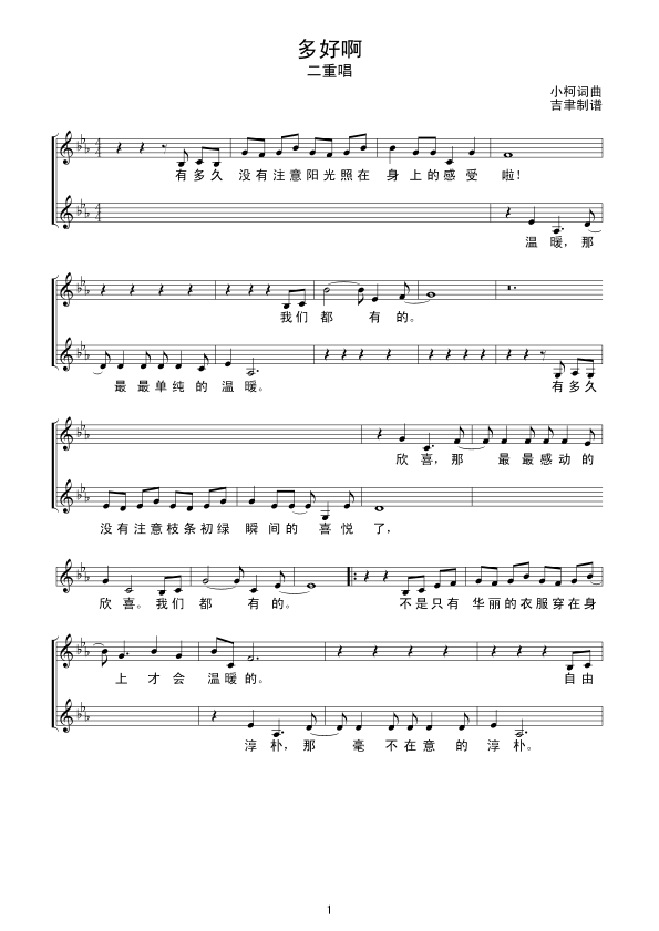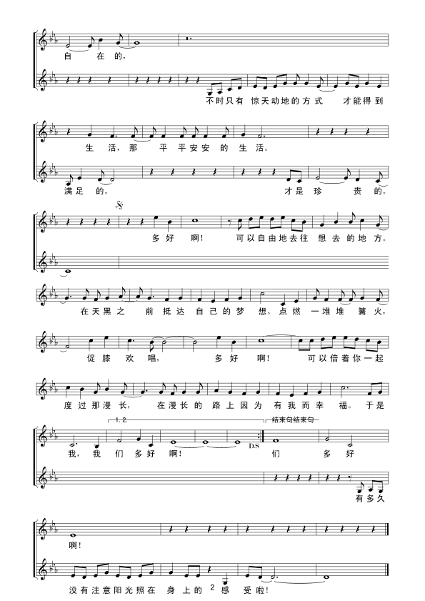 多好啊 五线谱 曲谱 歌谱